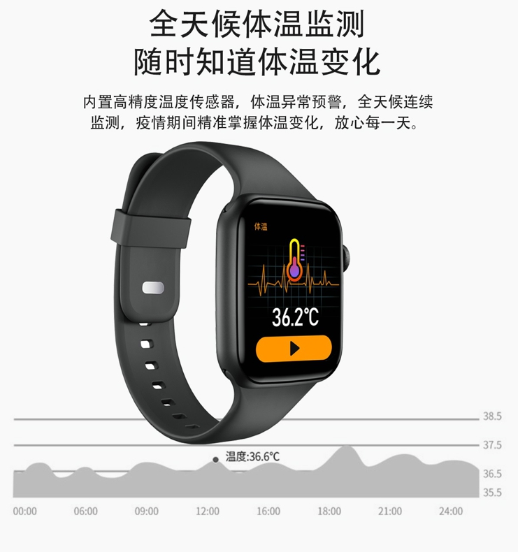 真旋转按钮、真心率检测、真体温检测、超长续航、IP67防水、蓝牙通话、蓝牙音乐、睡眠监测、远程拍照、 久坐提示、抬手亮屏、亮度调节、计算器、信息、秒表、计步、日历、天气、倒计时、查找手机(连接手机使用)、分屏显示、多运动模式、表盘推送、内置多种动静态高清表盘 |